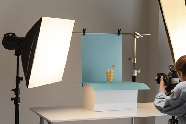- Wide shooting area of 1500 SQ.Ft with multiple seamless background and backdrop